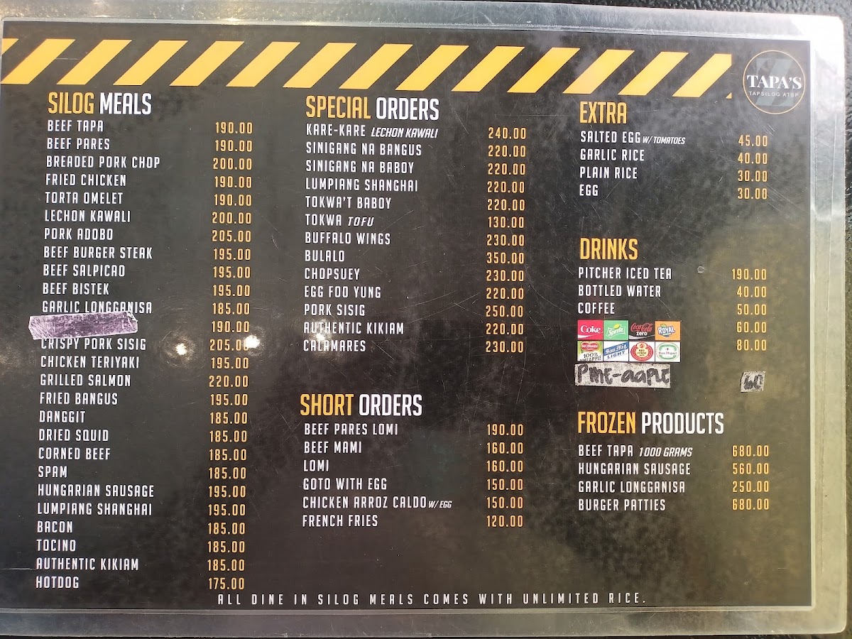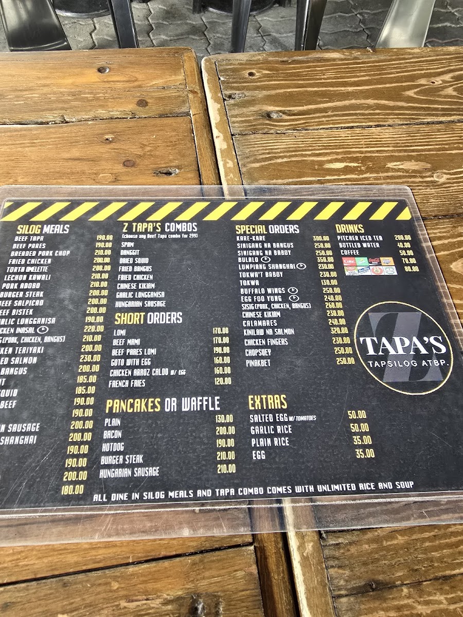 Z TAPA'S Tapsilog Atbp. in Balibago, Angeles is a haven for silog lovers craving authentic Filipino flavors. Their menu highlights a variety of silog meals, featuring classics like Lechon Kawali, Corned Beef, Bacon Silog, and the signature Tapsilog—all served with unlimited garlic rice and rich, savory soup. The Beef Pares and Crispy Pork Sisig stand out, showcasing deep, satisfying flavors crafted with care. Beyond silogs, their short orders and special dishes, such as Beef Pares Lomi and Sinigang Na Baboy, offer comforting, hearty options that complement the main favorites.